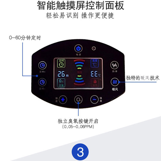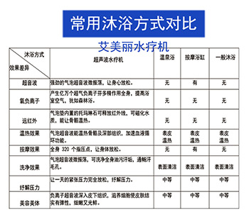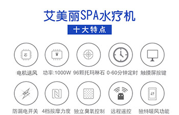 艾美丽美容院水疗机搭载750W双风叶电机提供强大风力,集超音波、远红外线功能、臭氧负离子功能、按摩与一体,利用水的物理特性,通过按摩全身,已达到身心灵的放松。