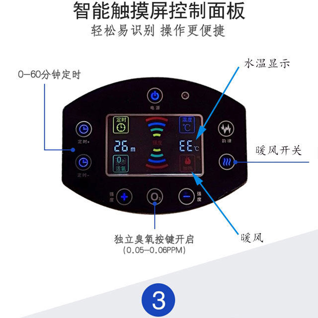 艾美丽美容院水疗机搭载750W双风叶电机提供风力,集超音波、远红外线功能、臭氧负离子功能、推拿与一体,利用水的物理特性,通过拍打全身,已达到身心灵的放松。